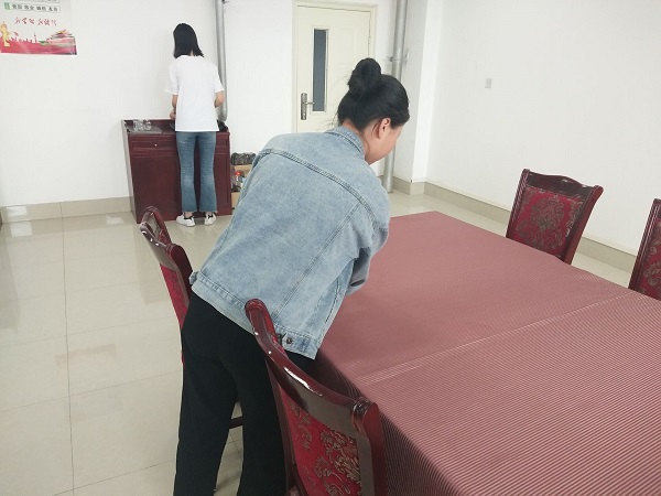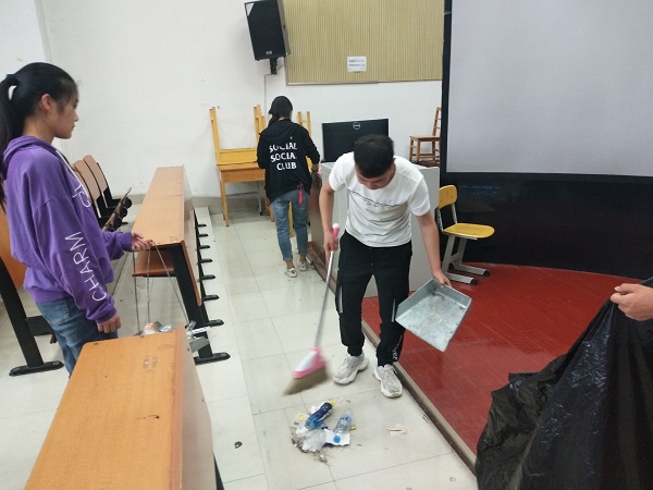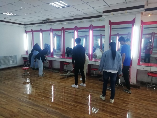 当天下午2:30,参加义务劳动的学生们一起拿上抹布、扫帚,垃圾匣、垃圾袋等卫生工具准时来到综合楼6楼bat365官网登录入口的茶艺培训室、茶艺茶花室等培训室门前,分工合作,大约40分钟后,各个培训室的垃圾都被清理干净。下午3:30,大家又一起抵达四楼上导游模拟室、文物陈列室、画室及苹果智慧实训室等区域,由班干部划分了任务后,大家分成了室内卫生组与走廊卫生组,室内卫生组负责打扫各培训室的地面及擦拭桌子,走廊卫生组负责清理走廊地面、厕所及休息区卫生。经过一小时的劳动,bat365官网登录入口整体办公区域的面貌焕然一新,窗明几净。