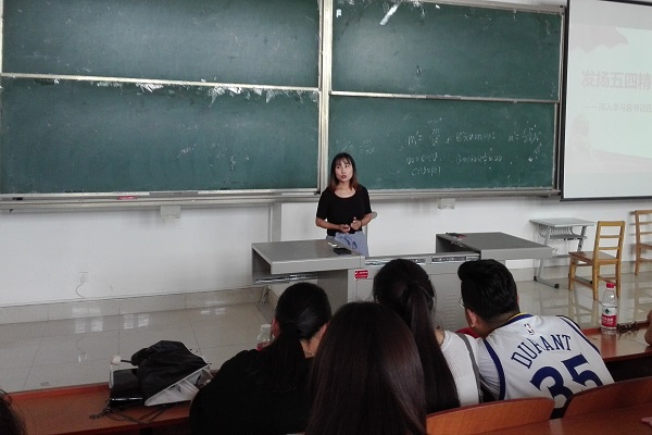 课程开始前,范老师先讲解了本次课程的主题:发扬五四精神,争做时代新人——深入学习近平总书记在北京大学师生座谈会上的重要讲话。本次的课程讲授,范老师主要从爱国、进步、民主科学的五四精神、广大青年生逢其时,也重任在肩、广大青年既是追梦者,也是圆梦人、我们的明天需要青年人接着奋斗下去、做德智体美全面发展的社会主义接班人和对广大青年提出四点要求这六个方面来进行讲授。首先,范老师为大家讲解了爱国、进步、民主、科学的五四精神,范老师讲到,从五四运动到中国特色社会主义进入新时代,中华民族迎来了从站起来,富起来到强起来的伟大飞跃,新中国的成立让中国人民站了起来,改革开放的实施,让中国人民富了起来,而如今,习近平总书记带领大家强了起来,这在中华民族发展史上,在人类社会发展史上都是划时代的。接着,范老师引用习近平总书记在北京大学师生座谈会上的讲话指出,当代青年是同新时代共同前进的一代,广大青年应以青春之我,奋斗之我,为民族复兴铺路架桥,为祖国建设添砖加瓦,努力把我国建设成为社会主义现代化强国,一代接一代不断前进。范老师讲到,我国在1978年实施改革开放,2001年我国社会总体达到小康,2020年,我国将全面建成小康社会,2035年,我国将基本实现社会主义现代化,到本世纪中叶,我国将建设成社会主义现代化强国。最后,范老师借用习近平总书记在同北大师生代表座谈时的讲话对同学们提出四点要求,一是要爱国,忠于祖国,忠于人民;二是要励志,立鸿鹄志,做奋斗者;三是要求真,求真学问,练真本领;四是要力行,知行合一,做实干家。