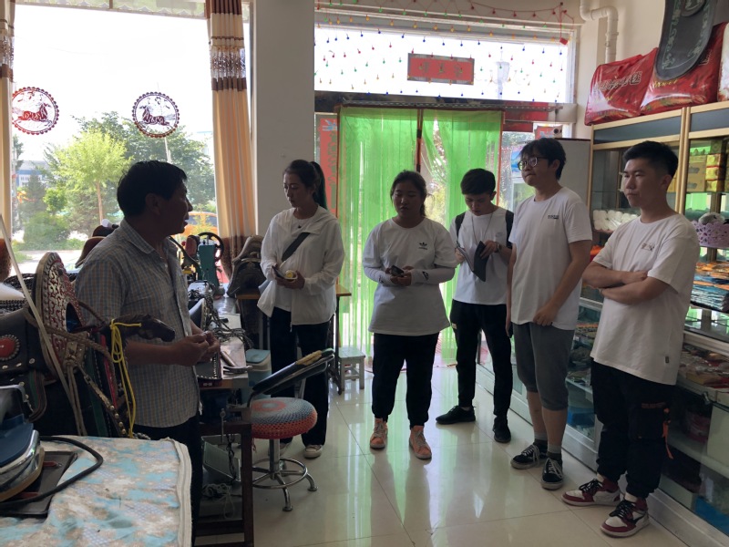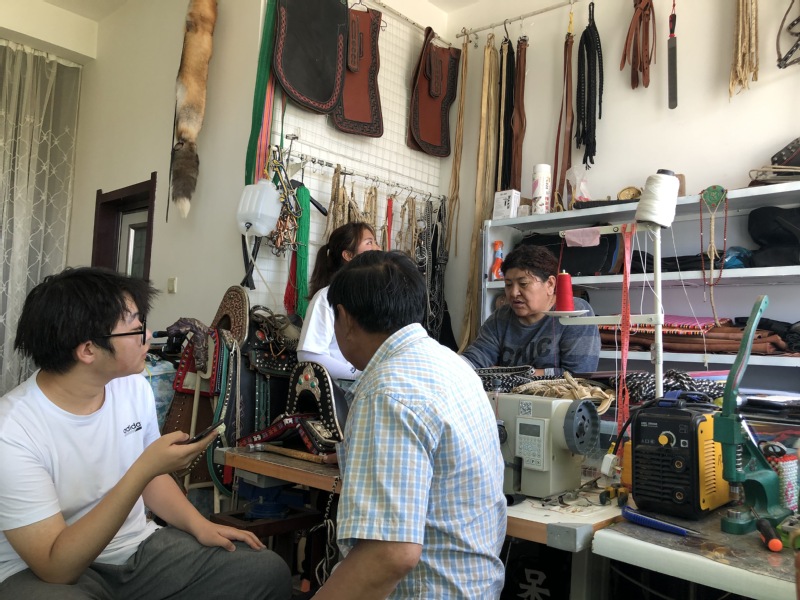 25日下午,调研团在李老师的带领下来到了马具制作的市级传承人蔡拉老师的制作工坊,调研团成员与蔡拉老师开展相关非遗技艺当前生存状况问题的口述访谈活动,从传承人简介、如何传承非遗项目、非遗文技艺文化传承流失情况等29个问题进行调查,并且整理相关口述资料,形成文字资料。