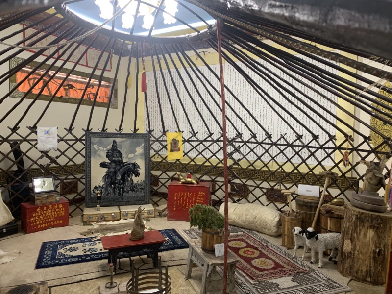 随后我们来到了蒙古族文化实物展示厅。在蒙古族文化实物展示厅中,陈列着七八十年代蒙古族使用的马鞍、马靴、马头琴、家具、木式蒙古包以及传承下来的马上用具等珍贵藏品。这些老物件涵盖了蒙古族衣食住行的各方面,与当下生活形成鲜明对比。它们见证着蒙古族民众的生活变迁,也告诫后人今日生活的来之不易。伊力特馆长热情的向我们介绍到其中的缘由和历史,他说:“老物件的价值不能简单用金钱来衡量,这是一个民族的根,属无价之宝。”伊力特馆长表示,他还将继续收藏老物件,并对其进行分类,让更多人了解本民族昔日的辉煌和民族社会变迁的历史。