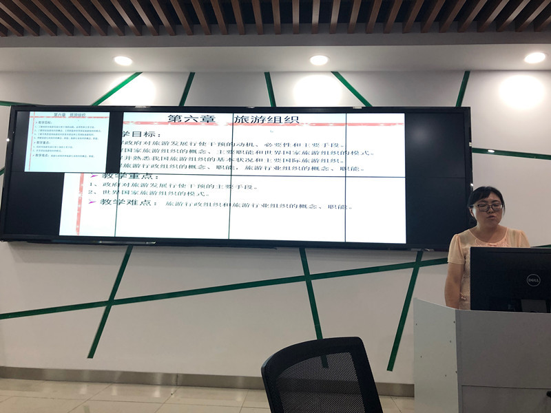 本次“磨课”针对2018-2019学年开设的本科课程开展,分三组进行,分别由牛海桢教授、雷金瑞教授、高燕副教授主持。“磨课”分为授课演示、集体评课和教师反思三个环节开展,相较前期“磨课”环节,本次“磨课”着重关注课程设计与评价过程。陈金生老师展示《中国传统文化概论》课程设计及实施方法,常承明老师等就如何进一步提升课程吸引力和应用性提出意见和建议;高燕老师和潘静老师分别展示《旅游学概论》课程设计,并与梁丽春老师就该课程与旅游英语类课程设计、教学导入、实施方法等方面的异同进行讨论;赵爱婷老师展示了《旅游市场营销》课程的应用型设计思路与教学手段,牛海桢老师和铁国花老师等就课程案例的专业性和适用性展开了研讨。在磨课过程中各位老师激情澎湃、旁征博引,一展华彩。