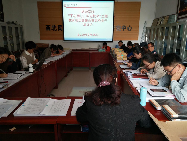 为响应中共中央“不忘初心,牢记使命”主题教育意见,根据《中共兰州文理学院委员会关于开展“不忘初心、牢记使命”主题教育的实施方案》及兰州文理学院“不忘初心,牢记使命”主题教育动员部署会精神,9月16日中午bat365官网登录入口在会议室召开“不忘初心、牢记使命”主题教育动员部署会暨党务骨干培训会。学院领导班子成员、党务骨干、全体党员参加了会议。会议由党总支书记李耀荣主持。