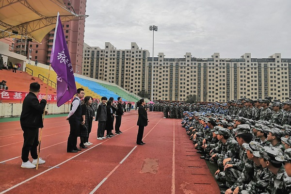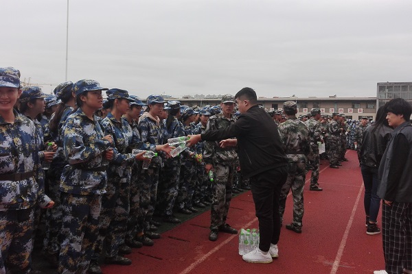 为更好地了解新生的军训生活,促进学院领导和老师与新生之间的沟通和交流,2019年9月17日上午,学院党总支书记李耀荣,学工办主任彭兰玲,以及学院马明兰、张秦、张惠、蒙弘毅、陈喜东等老师,前往第一运动场对我院2019级军训学生及教官表示慰问。