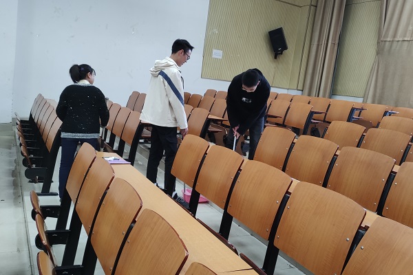 活动开始后,张秦老师首先对学生第二党支部中所存在的问题做了总结,对一些党员还未进行实名注册学习强国和甘肃党建的,督促其尽快完成注册并认真学习。接着,学生第二党支部所有党员积极参与到“清扫教室卫生、不给垃圾留死角”的志愿服务活动中去,大家分工明确、积极配合,活动开展十分迅速有效。