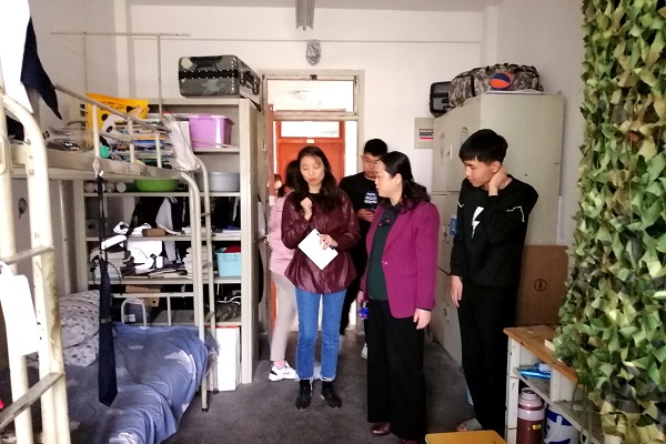 为强化大学生养成教育,促进学生宿舍建设, 20191023日下午三点,bat365官网登录入口开展宿舍卫生与安全检查活动。党总支书记李耀荣、团学办主任彭兰玲和张秦、张惠、陈喜东三位辅导员老师带领预备党员代表、学生会主席团及生活部干事、青媒中心成员共分三个组,分别深入学院学生宿舍,对所有学生宿舍进行了检查。