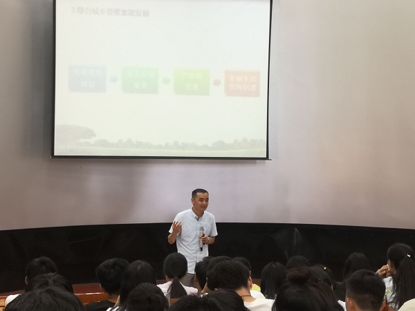 本次讲座孙老师主要从解读乡村振兴战略、乡村旅游要同频共振和浪街村美丽乡村规划三方面来展开阐述。首先,孙老师带大家进行了乡村振兴战略的解读,乡村振兴战略作为十九大报告中的七大战略之一,是决胜全面建成小康社会、全面建设社会主义现代化强国的一项重大战略任务。孙老师指出,乡村从来不是处在从属地位上,目前我国的城乡差距依然较大,城市和农村是命运共同体,孙老师通过图表数据结合的方式给大家详细的解读了关于乡村振兴战略的背景,孙老师指出,当前我国社会中最大的发展不平衡是城乡发展不平衡,最大的发展不充分是农村发展不充分,农民增收后劲不足,农村自我发展能力弱,城乡差距依然较大,为此,我国新农村建设的主要内涵也由之前的生产发展、村容整洁、乡风文明、管理民主、生活宽裕变为产业兴旺、生态宜居、乡风文明、治理有序、生活富裕。总之,产业兴旺是根本,生态宜居是基础,乡村文明是关键,治理有效是保障,生活富裕是目标,为的就是振兴乡村。接着,孙老师提出,乡村旅游要同频共振,发展乡村旅游也是乡村振兴的重要突破口,同时,人们应该秉持可持续发展理念,凸显乡土文化特色,整合城乡要素集聚发展,注重产业融合发展,激活多元发展主体。最后,孙老师为大家展示了浪街村美丽乡村规划。讲座在同学们的掌声中落下帷幕,同学们表示在此次讲座中受益匪浅,收获颇丰。