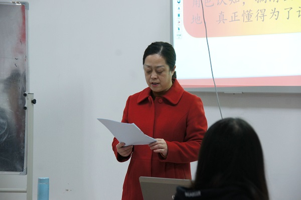党课开始,李耀荣书记就党的历史;党的路线、基本性质和宗旨、指导思想;党的组织纪律和作风教育;入党的标准、条件和程序等基本知识向同学们作了介绍。首先,李耀荣书记提到“我是谁?为了谁?”是每一个共产党员都需要时刻保持清醒认识的根本性问题。要求每位入党积极分子要从根本上认识“我是谁”和从源头上理解“为了谁”这两方面入手,深思如何践行共产党员的身份,明确为党工作与为人民服务的关系,牢记共产党员的第一身份永远是共产党员。其次,李耀荣书记指出,共产党人的身份职责永不变。中国共产党从成立那一天起,无数共产党员为了民族独立、人民解放、国家富强的崇高理想和信仰,牢记第一身份,坚守第一职责,为了国家和人民的利益,做出了巨大的牺牲甚至献出了自己宝贵的生命。接下来,李耀荣书记对怎样来提高党员意识作了解读。她说到只有切实增强政治意识、切实增强大局意识、切实增强核心意识和切实增强看齐意识,才能树立正确的入党动机,深入的了解当前经济政治形势。最后,李耀荣书记对同学们的学习和生活方面做出了要求,她提到要以党员的标准严格要求自己,阅读先进人物传记,积极学习评建知识,为迎接我校十二月份的本科考核评估做好准备。