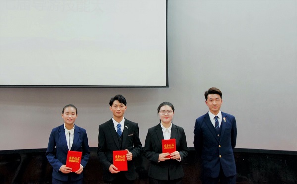 最后,评委老师对获奖选手颁发荣誉证书及奖杯,并合影留念,本次导游技能大赛圆满结束。此次导游技能大赛可谓异彩纷呈,不仅丰富了同学们的校园文化生活,还展示了bat365官网登录入口学生良好的职业素养和风采,使同学们将理论与实践进一步结合,在提高自身综合素质、巩固专业知识、强化专业技能、增强教学效果等方面有着非常重要的意义。