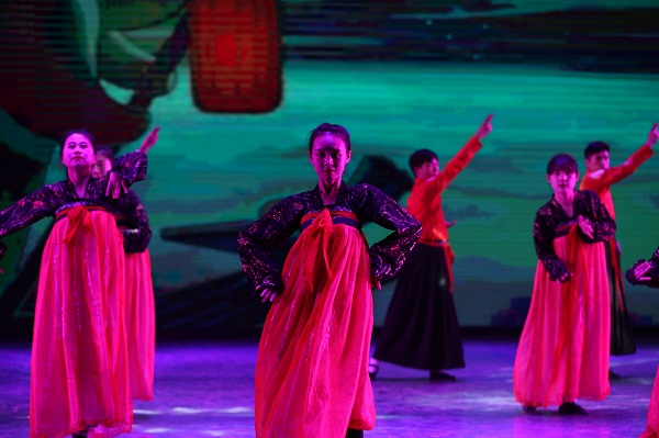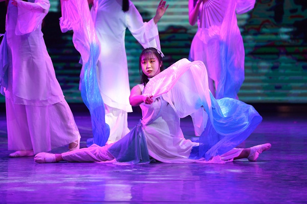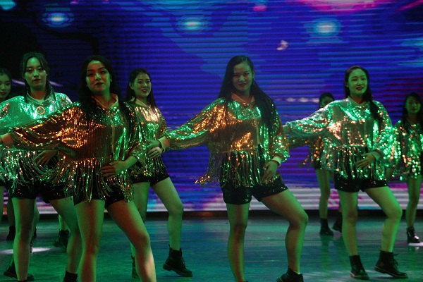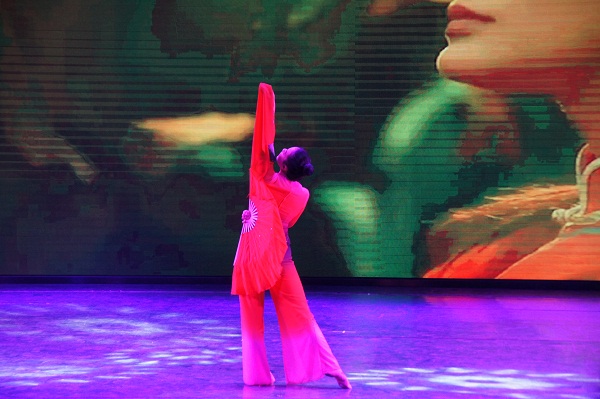 舞衫回袖送春风,歌扇当窗揽秋月。她们轻盈柔美的舞步,舒展灵活的动作,舞出了青春的活力,舞出了时代的风采,成为晚会中一道靓丽的风景。
