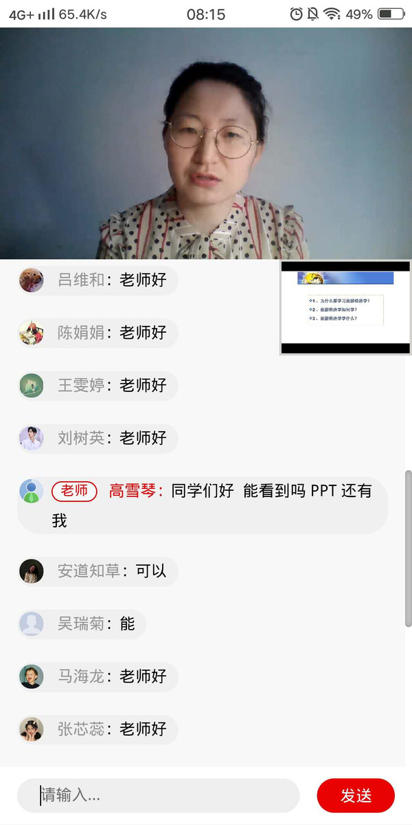 为了上好新学期第一课,旅游学院高雪琴老师做了充分的准备。他提前在网上搜索选择与本课程最相关的《旅游经济学》课程视频材料,下载下来供同学们在家中自主学习时作为参考。讲课时,她针对课程的重点和难点知识,在教学过程中充分利用“超星学习通”功能与学生互动,及时了解和解决教学过程中出现的问题,对不懂的问题,深入浅出地换角度讲述,尽力把内容讲清讲透。