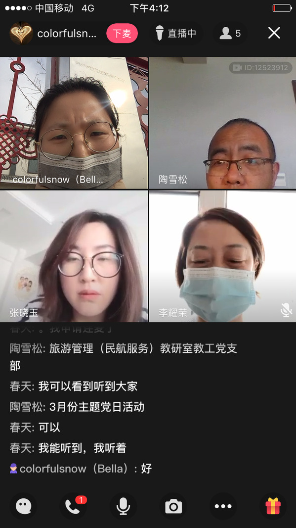 根据学校党委的统一部署,学院党总支的具体安排,2020年3月25日下午,在新冠疫情形势依然严峻的情况下,航空乘务教工党支部利用QQ群在线直播会议,组织支部党员召开三月主题党日活动,会议以“停课不停学,提高在线教学效果”为主题,各位支部党员就疫情期间在线教学心得进行了交流,会议由航空乘务教工党支部书记陶雪松同志主持。