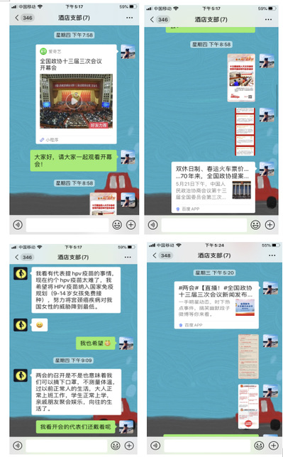 2020年5月21日、22日晚,bat365官网登录入口酒店管理教研室教工党支部组织开展学习全国“两会”精神主题党日活动。会议由酒店管理教工党支部副书记马婷婷组织,全体支部党员参加。