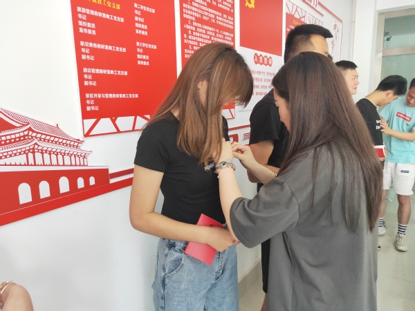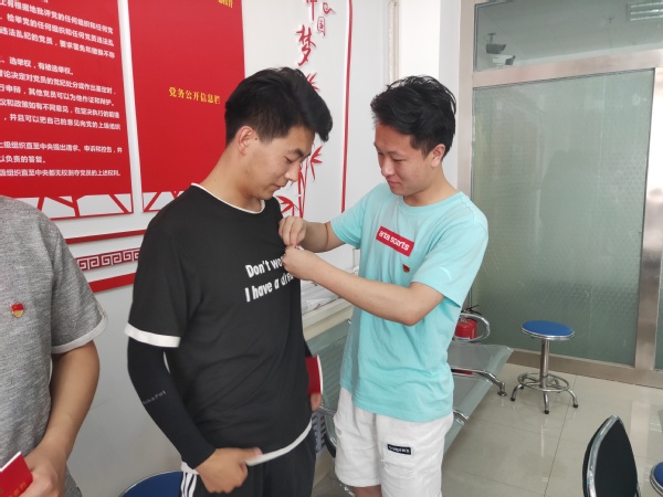由支部副书记李正轩同志以支部名义,向党员赠送一份《中国共产党章程》手册作为“生日礼物”,支部组织委员文浩同志和宣传委员王子戈同志为刚刚接收发展的12名预备党员佩戴党徽,并带领全体成员重温入党誓词。全体党员开展了谈心谈话,党支部书记倾听了每一位党员的思想认识、掌握了党员的思想动态。郭欢欢等12名预备党员分享了入党心得体会,他们对照入党宣誓时的庄严承诺和入党志愿中的坚定决心,回顾自己的成长历程和入党以来的追求与表现,简要总结成长过程中取得的成绩,进行自我剖析,展望未来努力方向。