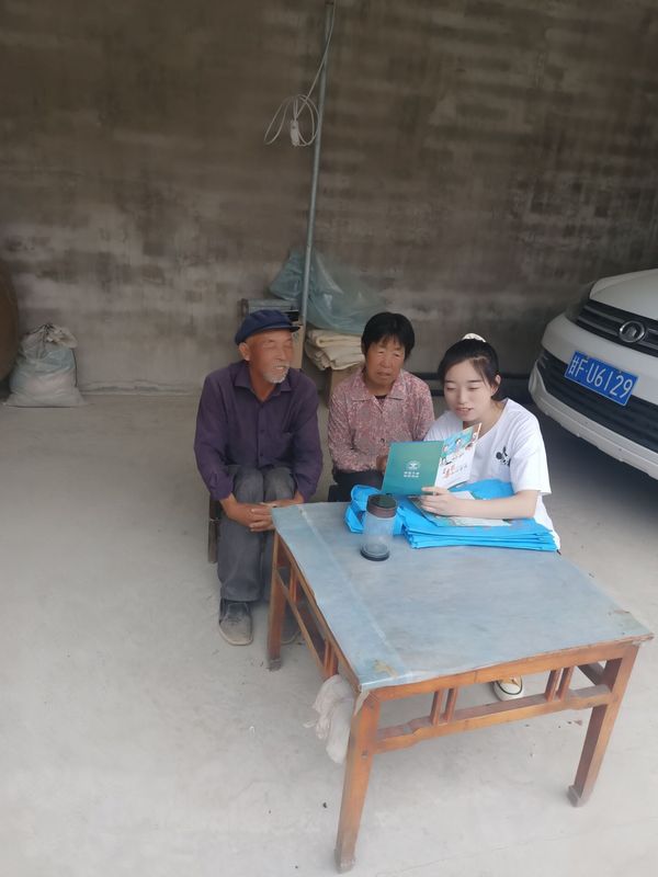 此图片为实践团队成员指导村民填写调查问卷(张合英供图)