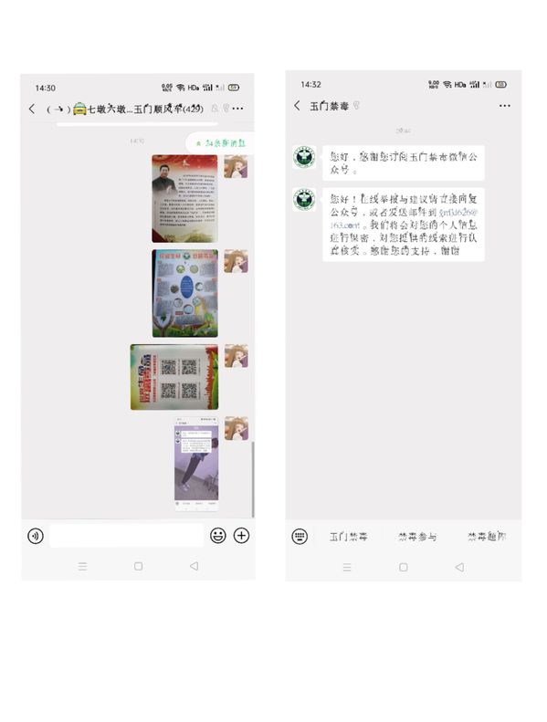 此图为实践团队成员在居民群里发禁毒宣传知识及公众号的关注。(张合英供图)