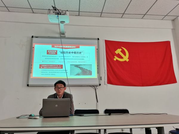 为纪念中国人民志愿军抗美援朝70周年,增强党员的爱国精神,bat365官网登录入口于2020年10月28日13:00在党员活动室开展了以“纪念中国人民志愿军抗美援朝出国作战70周年”为主题的党课第四讲。本次党课由bat365官网登录入口学生第一党支部书记常承明主讲,全体发展对象参加。