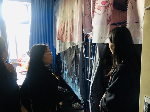 李耀荣书记和各位团学办老师带领随行人员在十二号楼下集合,分为三组后对不同的宿舍楼展开检查。本次查宿活动在慰问大一新生的同时着重对大三学生寝室卫生情况和整洁程度进行仔细检查。活动过程中,李耀荣书记叮嘱同学们床铺、书桌需保持干净整洁。相对来说绝大部分宿舍卫生干净整洁,物品摆放整齐,地面干净,空气清新,给人温馨舒适的感觉。同学们也十分重视查宿工作,但个别宿舍仍有垃圾堆放、不叠被子、桌面物品摆放不整齐等现象。针对这种现象,彭兰玲老师对宿舍长及成员进行了批评教育,希望以后杜绝这种行为的出现,营造一个舒适的环境。宿舍是同学们温馨的家园、幸福的港湾,为此我们应该积极营造健康良好的宿舍氛围,创造整洁舒适的宿舍环境,真正将宿舍文明落实到日常生活中。