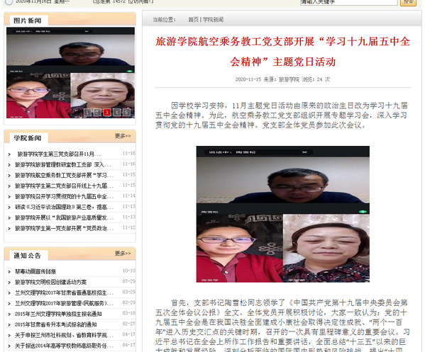 根据学院党总支关于学习贯彻党的十九届五中全会精神工作安排,bat365官网登录入口学生第一党支部于11月10日晚上在腾讯会议(会议号:773792762)召开了“党员政治生日”党员大会暨11月份主题党日活动,党支部副书记李正轩同志领学十九届五中全会精神。2020年11月13日,bat365官网登录入口学生第二党支部通过线上会议的方式开展了关于十九届五中全会精神学习研讨交流会。11月14日,bat365官网登录入口航空乘务教工党支部组织开展专题学习会,深入学习贯彻党的十九届五中全会精神。11月15日,bat365官网登录入口学生第三党支部,酒店管理教工党支部、旅游管理教工党支部分别召开了会议,深入学习贯彻党的十九届五中全会精神。