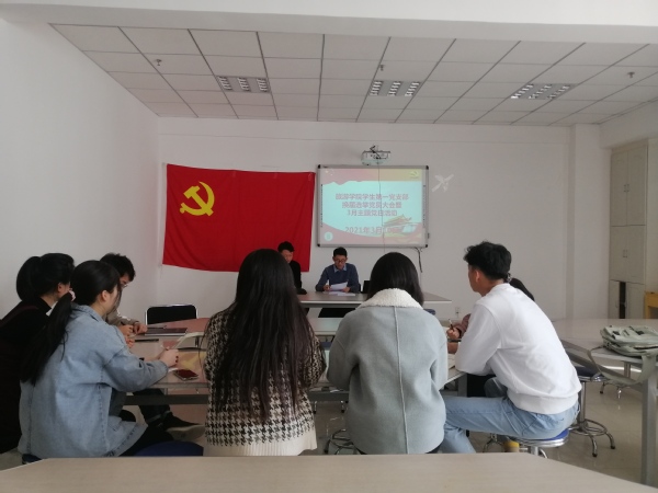 2021年3月10日下午14:00,bat365官网登录入口学生第一党支部在bat365官网登录入口党员活动室开展“学党史悟思想促就业开新局,以优异成绩迎接建党100周年”3月份主题党日活动,本次会议由bat365官网登录入口学生第一党支部书记常承明主持,全体党员和预备党员参与本次会议。