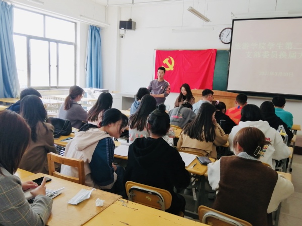 为进一步加强党支部建设,经学院党总支批示,2021年3月10日下午13:00,我院学生第二党支部于3-405教室召开了支部委员换届大会。本次换届大会由学生第二党支部书记张秦同志主持,支部全体党员和预备党员参加了大会。