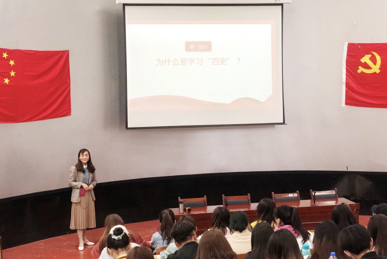 莎莉副教授分别从三个方面为同学们讲述“四史”,一是为什么学习“四史”,莎莉教授用一句话总结到党史是中国共产党的领导不断走向成熟的实践史;二是深刻理解“四史”的重要价值,也就是预知大道,必先为史;三是学习“四史”所要达到的目标。莎莉老师讲到,党史可以让我们把握历史的规律,可以让我们树立正确的历史观,如果每一个人,特别是党员干部都时刻把人民群众的利益放在第一位,把党的事业放在第一位,应该人人都能在自己的岗位上干得出色,收获非常充实的人生,在实现个人价值的同时,也为社会的发展,为人类进步责献了自己的微薄力量,这应该就是习近平总书记所期望的,所有人共同为实现中华民族伟.大复兴的中国梦不懈奋斗。