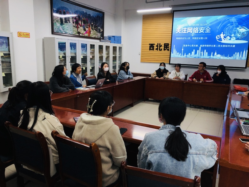 为深入学习贯彻习近平总书记“七一”重要讲话精神,做好“为党旗添光彩,为师生办实事”实践活动再学习、再调研、再落实工作,发挥机关党支部和党员在大学生党建和思想政治工作中的积极作用,以共建活动促进机关部门与二级学院党建工作提质增效。10月19日下午,信息中心党支部与bat365官网登录入口学生第二党支部在1-415开展了“结对共建——关注网络安全”活动。参加活动的有信息中心党支部全体党员、bat365官网登录入口学生第二党支部全体党员。活动由bat365官网登录入口学生第二党支部书记张秦主持。