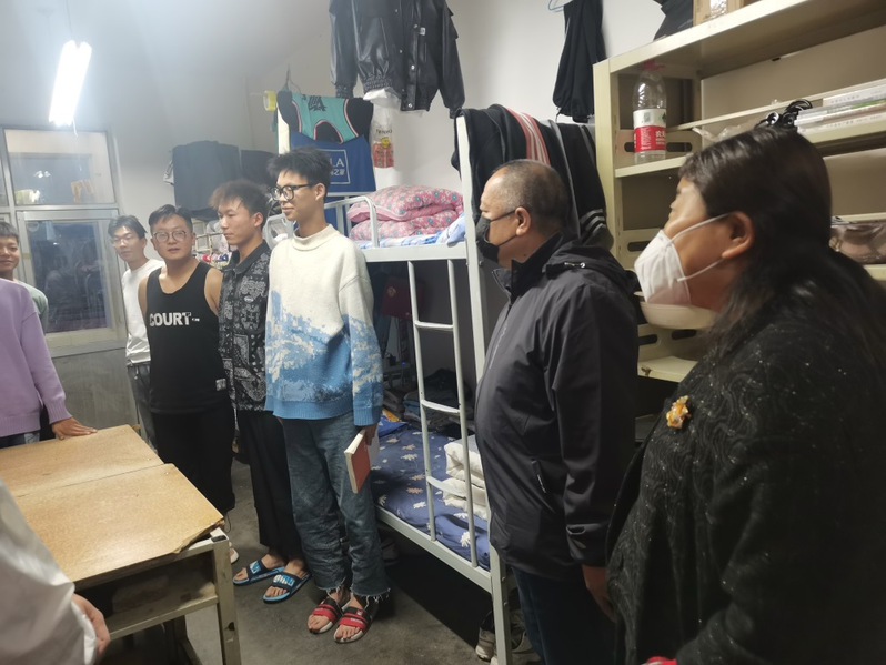 学院领导先后走访了20余个学生宿舍,亲切询问了学生线上学习情况及封校后宿舍生活的实际困难,并就学生住宿环境、饮食问题以及寝室卫生等方面进行了交谈,叮嘱同学们严格遵守疫情防控期间学校的各项管理规定,做好个人防护,做好通风,保持良好的宿舍卫生。