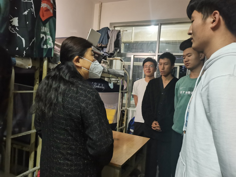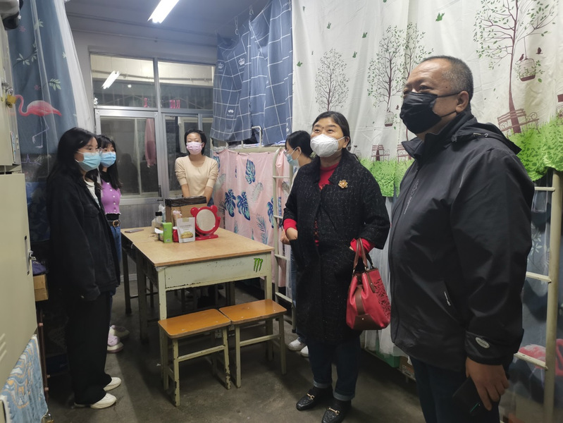 10月26日下午,bat365官网登录入口院长高亚芳、副书记刘锐、学院办公室及空中乘务办公室负责人一起深入学生宿舍,了解校园封闭管理期间学院学生的在线学习和生活情况。