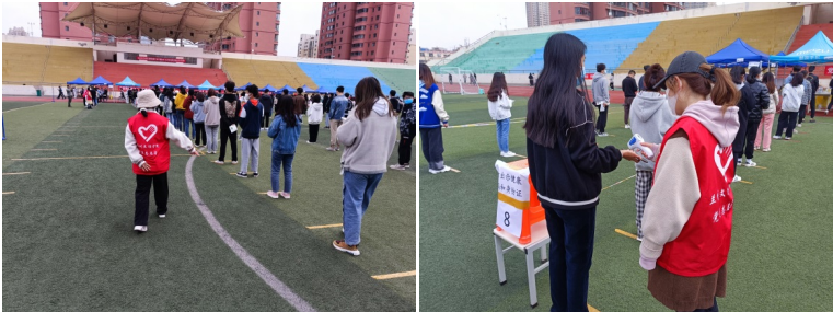核酸检测地点设在学校大操场,大家身穿红色志愿马甲协助核酸检测的医务人员做着查验“两码”、测量体温、组织各班有序排队等工作,大家不断在学校操场忙碌着,一抹红色在操场上格外显眼。预备党员石金平表示,作为班集体班干部、一名预备党员,他虽然不能像医务工作者那样请缨奔赴抗疫一线,但他会立足本职岗位,做好眼前的防疫工作,坚决打赢疫情阻击战,是他最大的心愿。作为00后预备党员安道知草对于能为抗击疫情贡献出自己的力量而倍感荣幸,“虽然我们不是广治疾病的医生,但只要尽己所能,我们也可以在抗疫的岗位中发光发热。”预备党员陈娟娟说:“我在兰州读书已经三年有余,这里已经成为了我的家,还记得成为预备党员的时候老师问我,什么是全心全意为人民服务,我认为疫情来临,毫不犹豫地去为人民服务就是每一个党员的使命。”