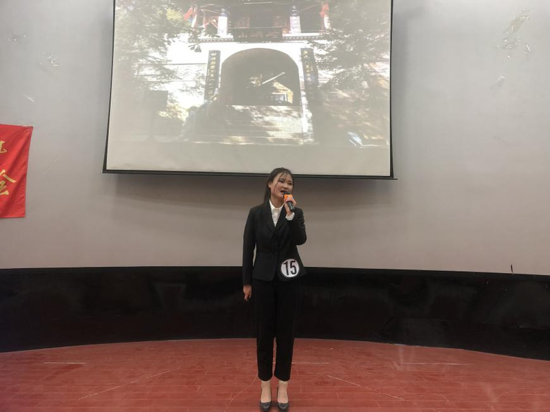 比赛分为才艺展示、自选景区讲解,内容涉及景区讲解、导游基础、导游实操、法律法规、生态保护、急救知识、文明旅游,涵盖导游带团过程的方方面面,全方位考查参赛导游的综合素质。比赛现场,参赛选手各显神通,展露精彩才艺,绽放美丽自己,并围绕各5A级景区进行讲解,选手们带着评委和观众“云游”各个景点。各参赛选手热情洋溢,自信满满,充分展现了我院学子落落大方的精神面貌。经过激烈的角逐,最终来自21级旅游管理二班的十六号选手张昭凭借着优秀的解说和出色的才艺展示夺得了本次比赛的一等奖。