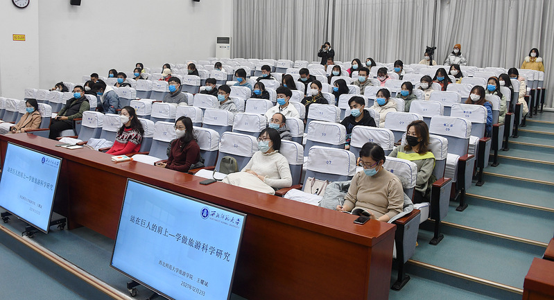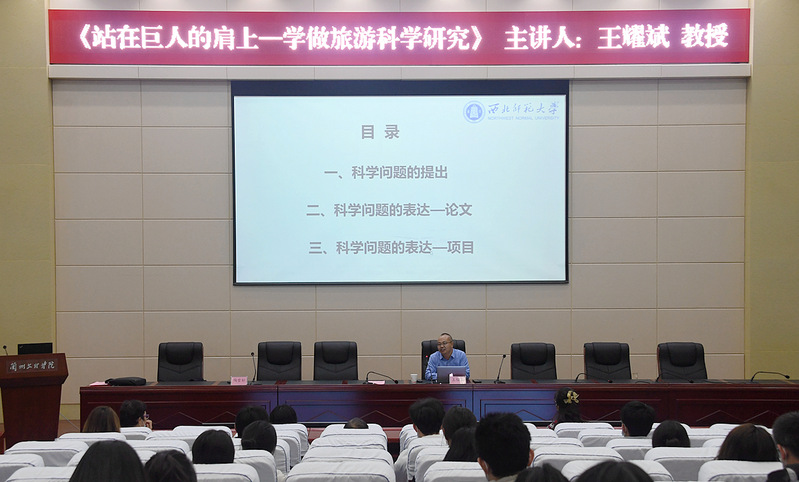 为进一步提升教师教学科研水平,强化学生科研意识,提高学生专业素养,12月2日下午,bat365官网登录入口邀请西北师范大学研究生院副院长王耀斌教授在学术报告厅做题为“站在巨人的肩膀上——学做旅游科学研究”的学术讲座。结合当前疫情防控工作需要,本次讲座采取“线上+线下”的方式同步进行,bat365官网登录入口全体教师、旅游管理及酒店管理、航空服务艺术与管理专业本科生共300余人参加,讲座由bat365官网登录入口陶雪松正高级工程师主持。
