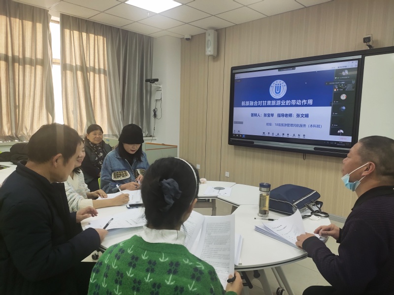 为提高本科生毕业论文质量,加强对论文写作全程性指导,2021年12月30日,bat365官网登录入口2022届旅游管理、旅游管理(民航服务)专业举行毕业论文开题答辩,全体毕业生共182名参加了开题答辩,答辩共分6组,因疫情防控要求,部分学生无法返校,学院安排智慧教室进行线上答辩。