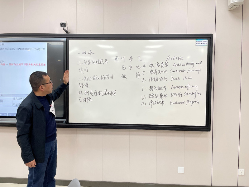 两天的培训过程中,老师们依次学习了积极教学法的简介、如何创建有效的学习环境、如何撰写学习目标、撰写四栏教案、有效的教学方法、教学评价检测等各项具体指标和任务。学习结束后,每个培训教师结合自己专业实际和培训收获,以一节15分钟的公开课展示了自己的学习成果。培训结束后老师们表示:通过培训,感受到了积极教学法的真正魅力,为下一步教育教学改革指明了方向。