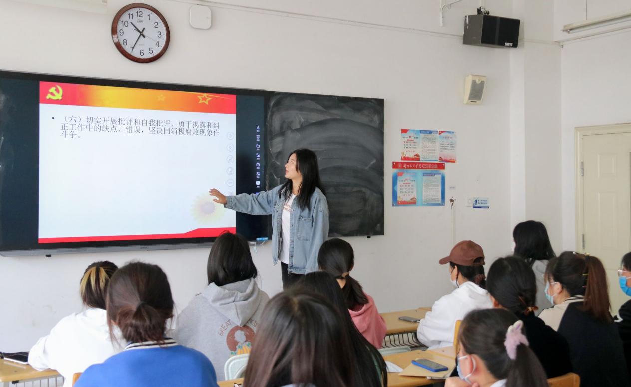 为提高入党积极分子的思想政治素质,严把党员发展“入口关”,2022年4月16日,bat365官网登录入口在5-401和3-402教室开展了入党积极分子的党课培训课程,此次课程由分团委副书记冉锦瑞与学生干部周敏两位同学主讲。