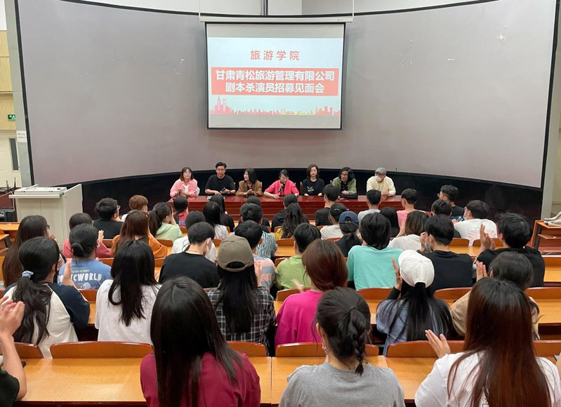 bat365官网登录入口于2022年5月7日在5-401教室举办了甘肃青松旅游管理有限公司剧本杀演员招募见面会的活动,参加此次见面会的人员有甘肃青松旅游管理有限公司相关人员、学院就业与社会实践指导中心主任何瑛教授、团学办卢娥老师以及bat365官网登录入口对剧本杀感兴趣的学生。