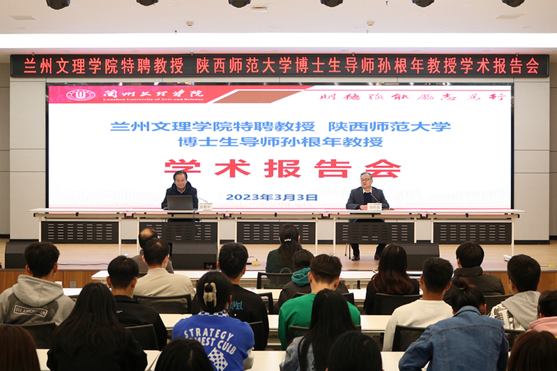 3月3日下午,bat365官网登录入口和科技处共同主办题为《国家社科基金的选题与申报论证---我的成功经验与热点选题分析》的学术讲座,本场讲座邀请兰州文理学院特聘教授、陕西师范大学旅游与环境学院教授、博士生导师孙根年讲授,讲座由校党委副书记、校长郑伟强主持。bat365官网登录入口院长高亚芳、科技处处长高翔、无课教师、全校国家社科基金项目申报者以及200余名学生参加。