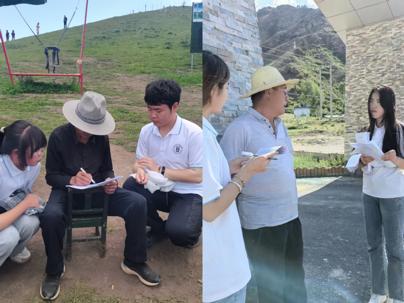 中午12点,实践团队到达抓喜秀龙草原,盛夏的抓喜秀龙草原和淳朴的民风让实践团队体验到了当地人民的热情,也让实践团队对天祝县旅游资源有了进一步的了解。同时实践团队针对抓喜秀龙草原的商户进行了调查问卷的发放与交流。