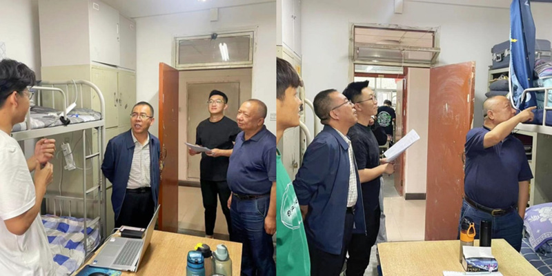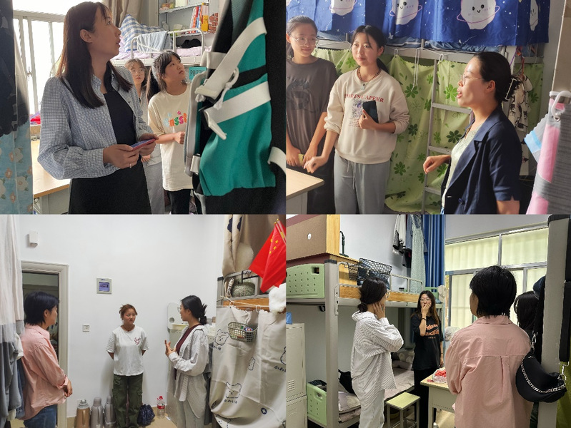 9月8日下午学院党总支书记刘锐、副院长陶雪松、辅导员及各班班主任前往学生公寓2号楼、7号楼,走访2023级新生宿舍,详细了解新生的生活情况。