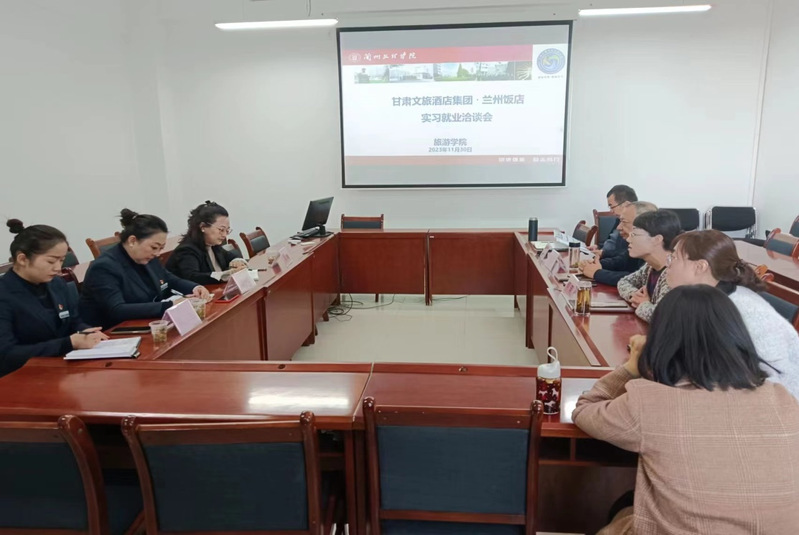 甘肃文旅酒店集团吴琨、兰州饭店刘一杨、分别介绍了甘肃文旅酒店集团、兰州饭店的发展、岗位需求等情况。对我院师资力量、学生培养质量给予了高度评价,对加强校企合作、提供实习就业机会表示出积极的意愿。