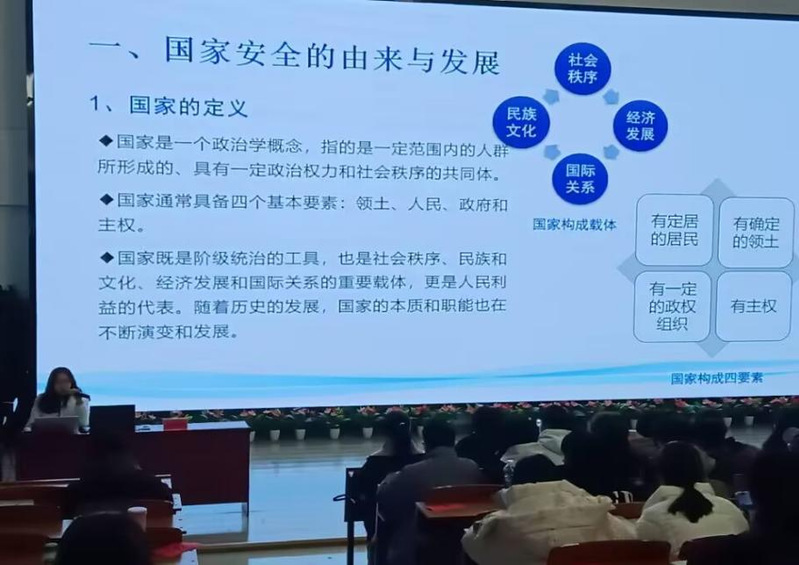 11月27日至11月29日,bat365官网登录入口在致远楼401开展大学生国家安全教育专题课程,由学院团学办辅导员老师陶文倩讲授,2024级全体学生参加。