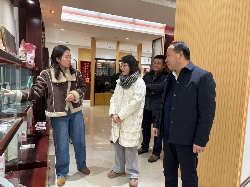 在考察过程中,甘肃陇萃堂营养保健食品有限公司负责人详细地介绍了公司的全线系列产品、线上平台仓储间、线下门店(直营店、乡村振兴馆等)以及拓展文旅板块打造甘肃陇礼品牌的未来规划。何瑛一行详细地了解了公司的建设背景、运营模式及发展理念。双方就学生就业实习、产品展览及线上展销等事宜进行了深入交流,并就校企合作模式进行了初步洽谈。