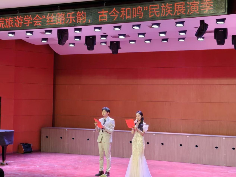 11月24日晚,根据bat365官网登录入口“一院一品”活动安排,由bat365官网登录入口分团委主办、旅游学会承办的“丝路乐韵,古今和鸣”民族展演季,在艺苑楼三楼音乐厅奏响文化强音。本场活动以传统文化传承与交流为内核,面向2025级旅游学会新生及旅院全体学生,共计200余名同学参加此次活动,既为青年学子搭建起展示才华的舞台,更让千年丝路精神在新时代绽放璀璨光芒。